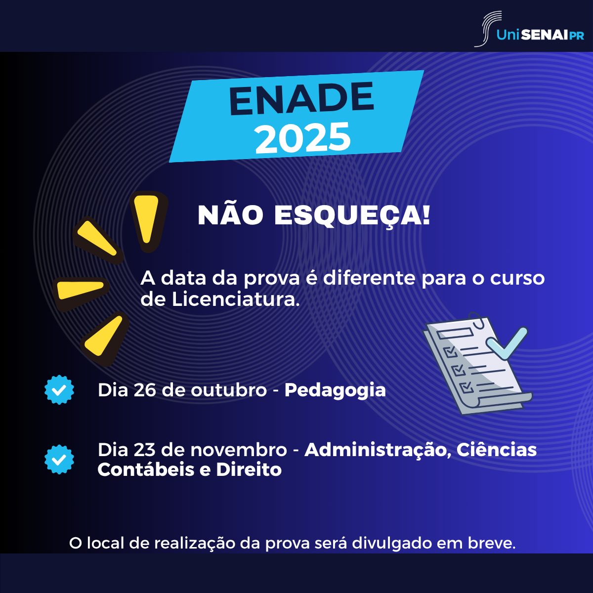 O UniSENAI/PR elaborou um cronograma com as principais datas e etapas do ENADE 2025.