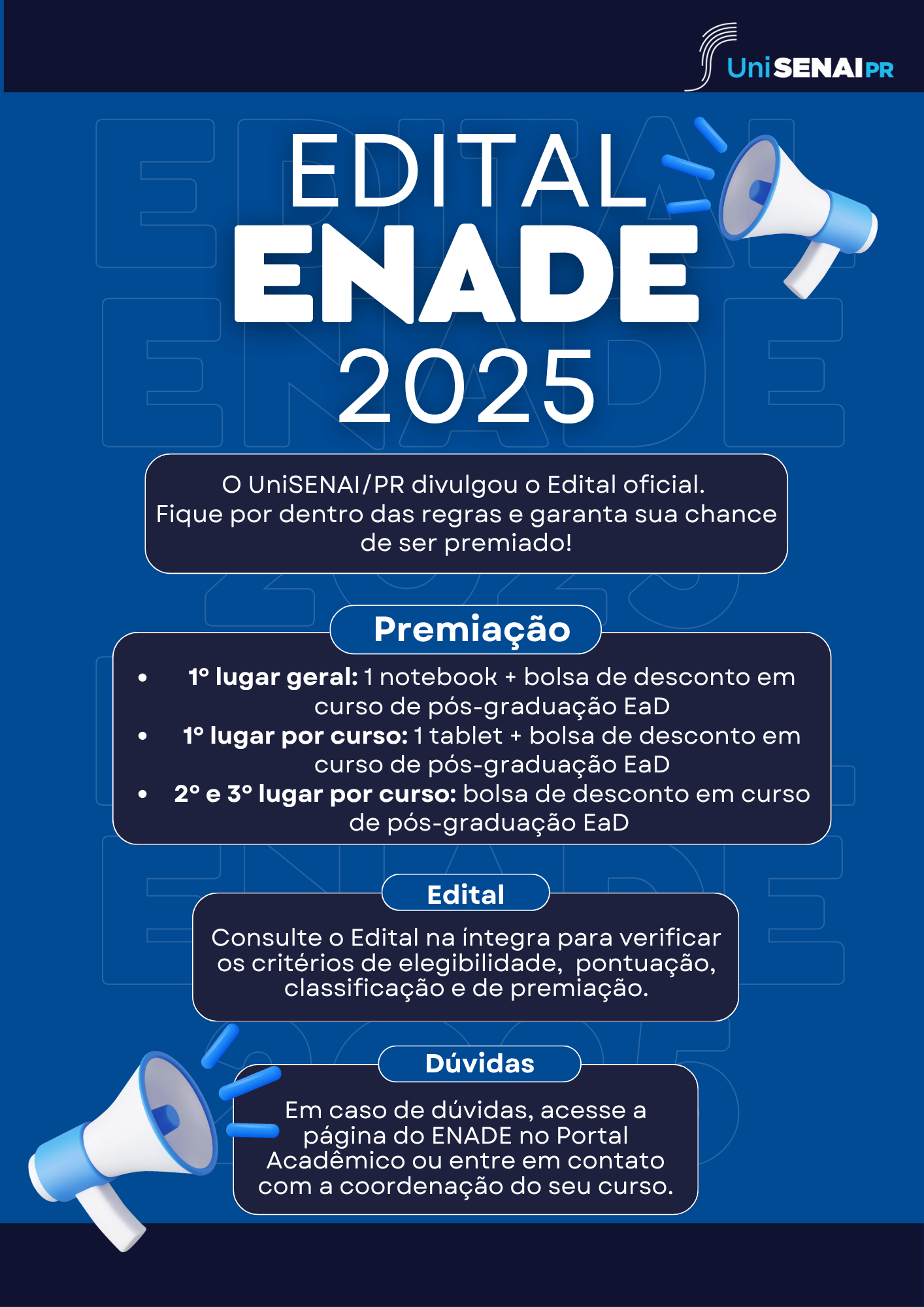 O UniSENAI/PR preparou um Edital de Premiação para reconhecer os(as) estudantes com melhor desempenho no ENADE.
