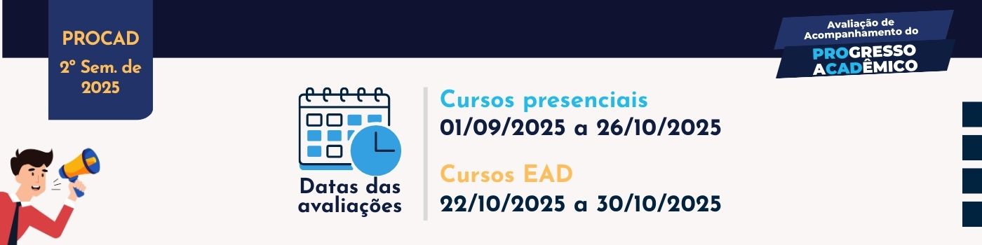 A Avaliação de Acompanhamento do Progresso Acadêmico (PROCAD), que foi desenvolvido para apoiar os estudantes UniSENAI/PR no acompanhamento da aprendizagem durante sua jornada acadêmica, proporcionando uma visão clara e objetiva sobre o desenvolvimento das competências e habilidades previstas para o seu processo de formação. Essa avaliação permite que você compreenda seu progresso acadêmico, identifique áreas de melhoria e se prepare de forma mais eficaz para sua trajetória acadêmica. Além de ser um instrumento para acompanhar seu crescimento acadêmico e profissional, o PROCAD oferece diversas vantagens, como: